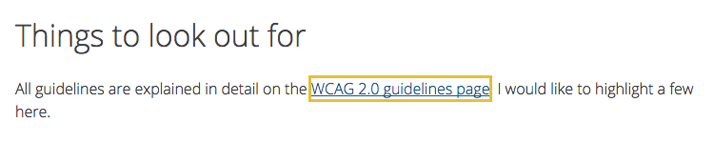 All guidelines are explained in detail on the WCAG 2.0 guidelines page. I would like to highlight a few here.