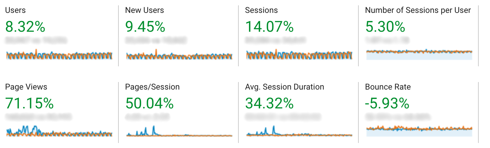 Ultimately, the goal is to attract more customers to your business. Reviewing the Google Analytics data a year after the switch to our platform, we conclude that visitors have increased by 14.07% and the site is receiving 9.45% more new users.